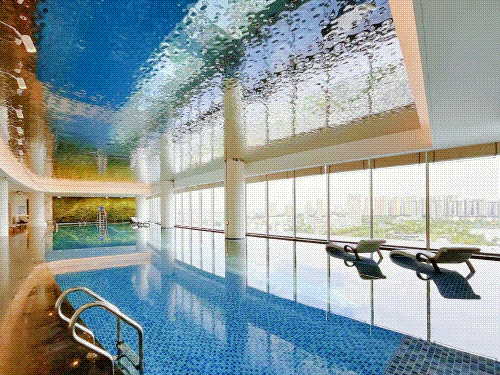 該室內(nèi)透明懸空泳池搭載了“逐夢深藍(lán)®低氯水處理技術(shù)”和“普派克®恒溫恒濕系統(tǒng)”兩大核心技術(shù),確保了泳池水質(zhì)的潔凈與健康,同時(shí)維持了室內(nèi)空氣的宜人與清新。