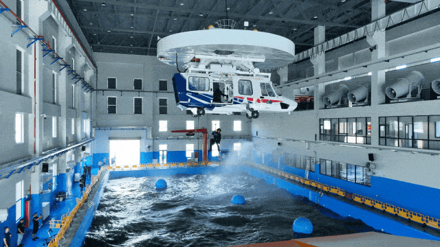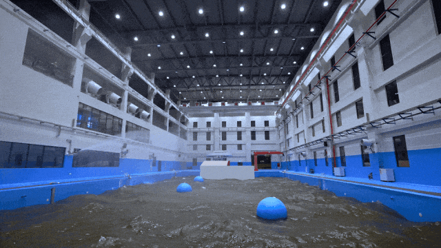 環(huán)境仿真方面,臺風訓(xùn)練館配備了造浪球、風機、特制燈光、音響等設(shè)備,能夠讓場館內(nèi)達到環(huán)境最大風力≥12級,最大降雨量≥50mm/h,最大環(huán)境噪音≥120db,最大造浪高度≥1.2m,基本復(fù)現(xiàn)最大12級臺風災(zāi)害下,風、雨、浪等復(fù)雜的救援環(huán)境。