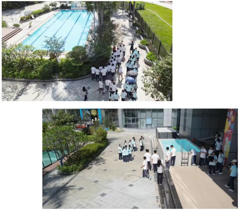在森薇園,造型各異的泳池設(shè)施瞬間吸引了學(xué)生們的目光。講解員化身“水質(zhì)偵探”,通過“望、聞、問、切”趣味互動,為大家揭開辨別泳池水質(zhì)衛(wèi)生的神秘面紗,深入淺出地講解泳池水處理知識。