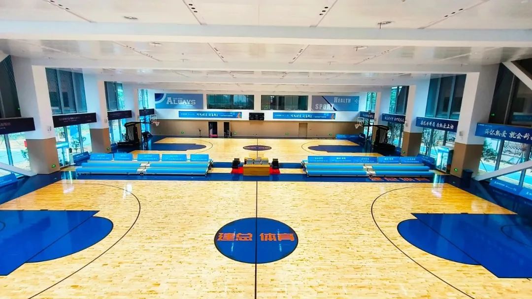 位于北側(cè)的綜合體育館一層設(shè)有室外標(biāo)準(zhǔn)網(wǎng)球場(chǎng)2片和室內(nèi)標(biāo)準(zhǔn)籃球場(chǎng)2片,配備男女獨(dú)立更衣室,二層則設(shè)置了觀眾觀賽區(qū)和公共活動(dòng)空間。