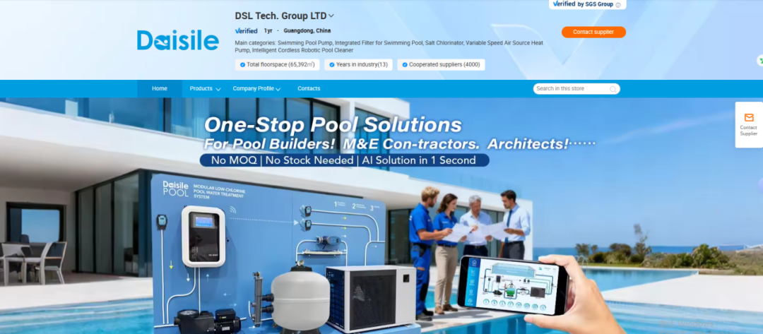 2025年,戴思樂入駐阿里巴巴國際站,以跨境電商模式拓局全球市場。平臺上線的產(chǎn)品系統(tǒng)解決方案,囊括低氯泳池系統(tǒng)、智能泳池系統(tǒng)、智能水質(zhì)在線監(jiān)測設(shè)備及智能無線泳池清潔機器人等,全面打造出海“拳頭產(chǎn)品矩陣”。此舉標志著戴思樂在品牌全球化布局與數(shù)字化營銷轉(zhuǎn)型的進程中,邁出了關(guān)鍵一步。
